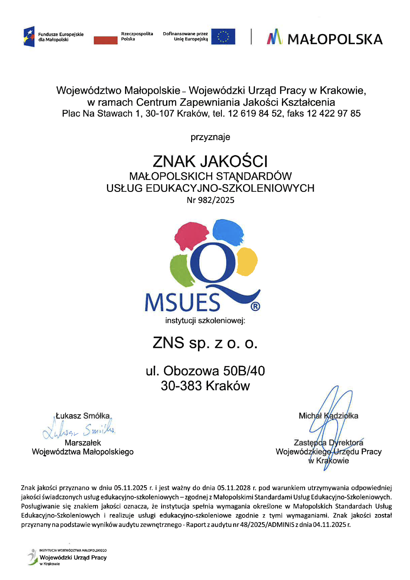 Planujesz rozwój zawodowy i szukasz kursu, szkolenia lub doradztwa z dofinansowaniem z funduszy UE? W gąszczu ofert łatwo się pogubić, dlatego warto kierować się konkretnymi, sprawdzonymi kryteriami. Jednym z nich jest znak jakości MSUES, czyli Małopolskie Standardy Usług Edukacyjno-Szkoleniowych.